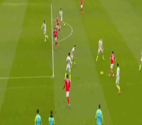 第7分钟,奥多伊左路突破,内切送出传中,伊戈尔-热苏斯、吉布斯-怀特和哈钦森抢点均踢空,皮球滑门而过。